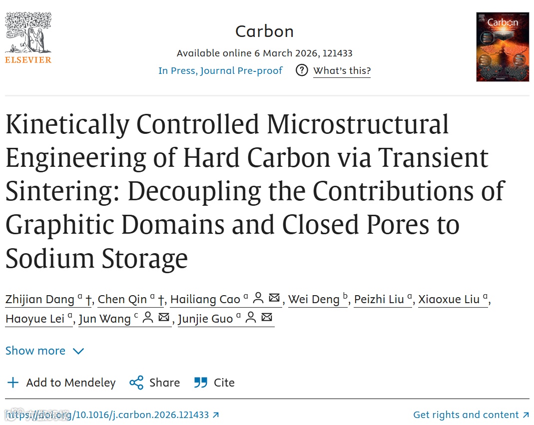 太原理工大学和南方科技大学最近在《Carbon》上发了一篇,用瞬态焦耳热,310秒就把生物质醋渣烧成硬碳,而且烧出来的结构和传统炉子(10.7小时)完全两个路子。他们用这套“快烧”样品和“慢烧”样品正面硬刚,结合原位拉曼、气体吸附、GITT,终于把平台容量的账算清楚了: