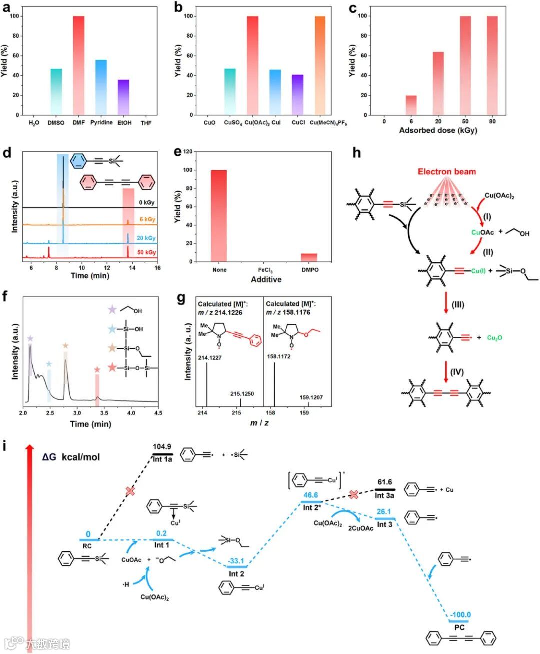 自由基-铜协同机理经 EPR 捕获与 DFT 验证,为电子束合成碳材料奠定理论基础。