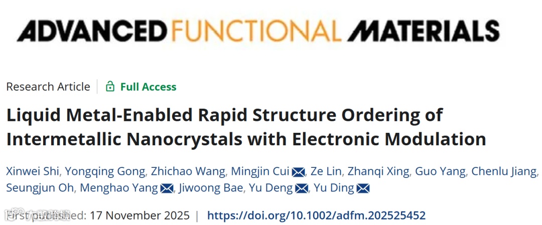 分钟级超快合成:利用液态Ga介质与焦耳加热,在1分钟内完成有序金属间化合物的可控制备,效率提升百倍
