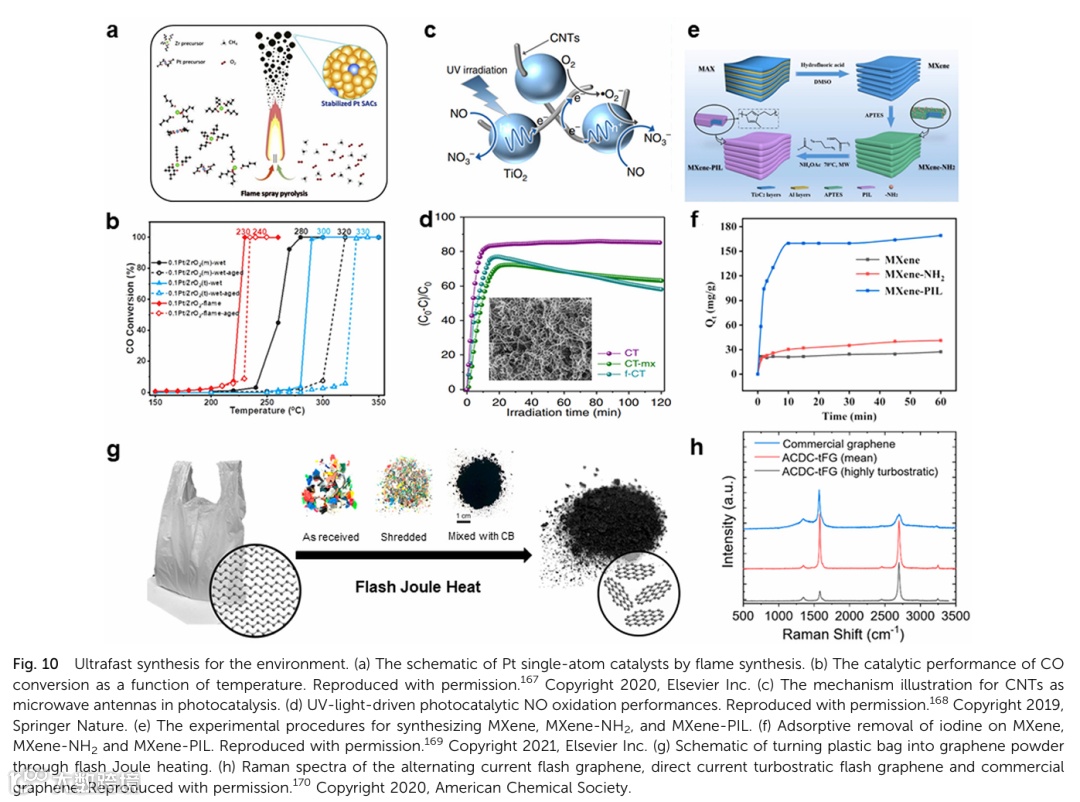塑料袋转化为石墨烯粉末的示意图 :图 10g 展示了通过快速焦耳加热法将塑料袋转化为石墨烯粉末的示意图。