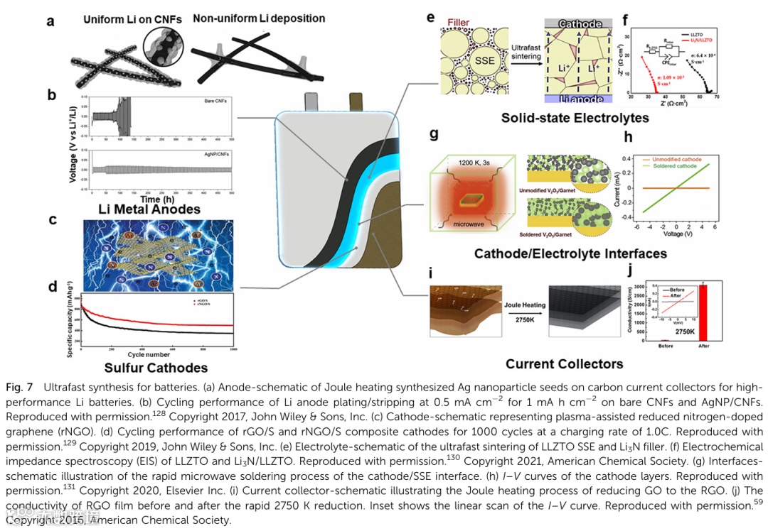 焦耳加热合成银纳米粒子种子 :图 7a 展示了焦耳加热合成银纳米粒子种子的阳极示意图,这种银纳米粒子种子负载在碳集流体上,用于高性能锂离子电池。