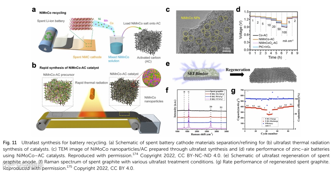 废旧石墨阳极超快再生的示意图 :图 11e 展示了废旧石墨阳极超快再生的示意图。