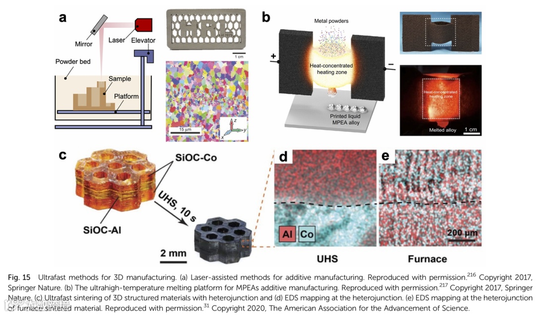 超快烧结的 3D 结构材料 :图 15c 展示了具有异质结的 3D 结构材料的超快烧结示意图。