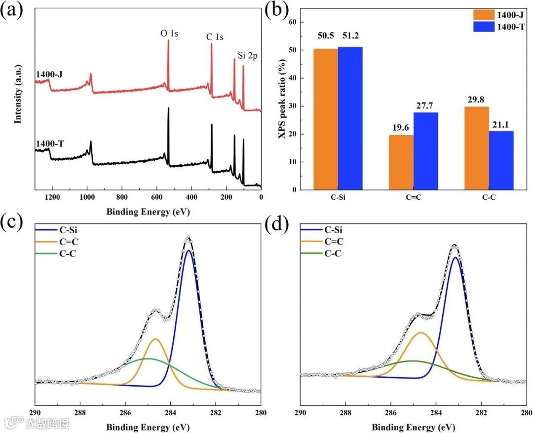 图6的XPS精细谱进一步定量证实,焦耳热冲击样品中C-C键的比例更高。这些“缺陷碳”结构(而非有序石墨碳)对SiC晶粒生长的钉扎抑制作用更弱,从而在超快高温下“解放”了晶粒,使其得以快速生长。这从化学键层面阐释了晶粒尺寸激增的深层原因。