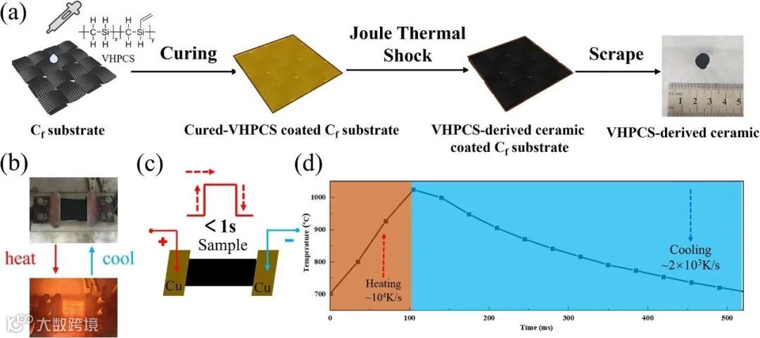 图1:1秒陶瓷化:焦耳热冲击装置与瞬时高温过程