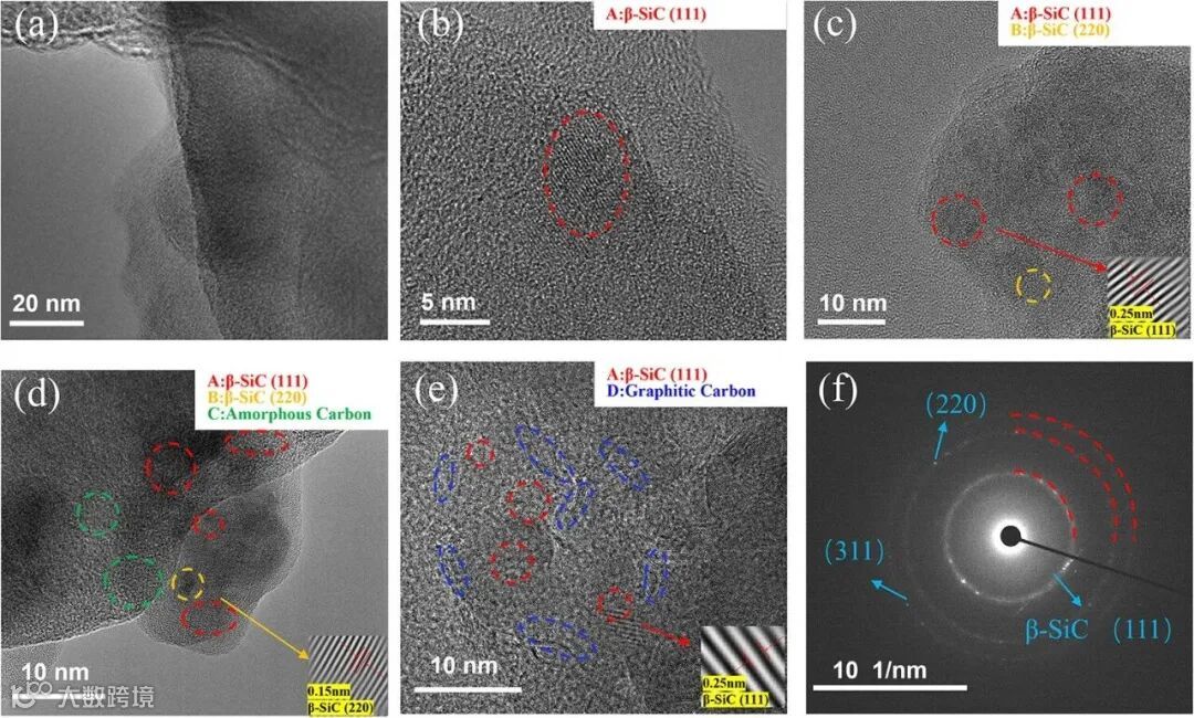 图7的系列TEM则系统展示了随着冲击温度升高,SiC晶格条纹从模糊到清晰、晶粒逐渐长大的完整演化过程。