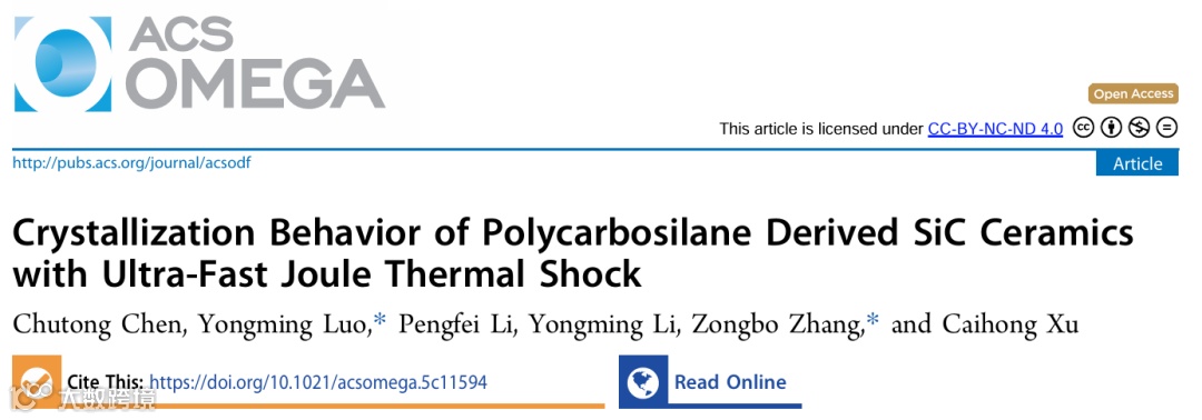 Chen, C.; Luo, Y.; Li, P.; Li, Y.; Zhang, Z.; Xu, C. Crystallization Behavior of Polycarbosilane Derived SiC Ceramics with Ultra-Fast Joule Thermal Shock. ACS Omega 2026, *1*(1), 100-110. DOI: 10.1021/acsomega.5c11594.