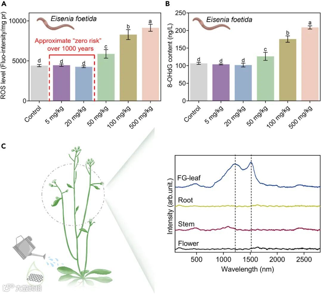图2 的环境安全性评估表明,FG对土壤蚯蚓未产生显著氧化损伤,且在植物体内分布可控,展现了其良好的生物相容性。