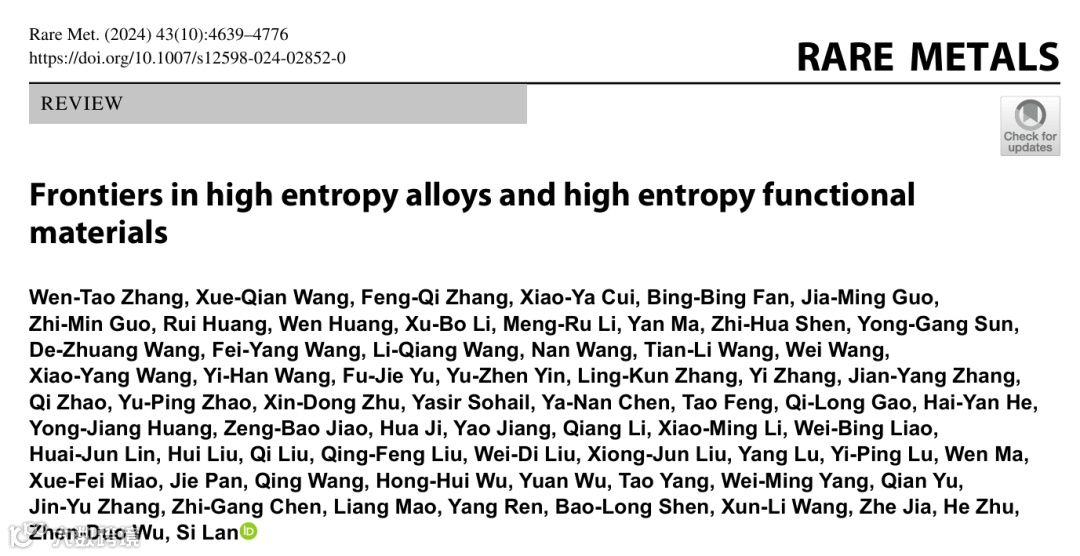 Zhang, WT., Wang, XQ., Zhang, FQ. et al. Frontiers in high entropy alloys and high entropy functional materials. Rare Met. 43, 4639–4776 (2024).