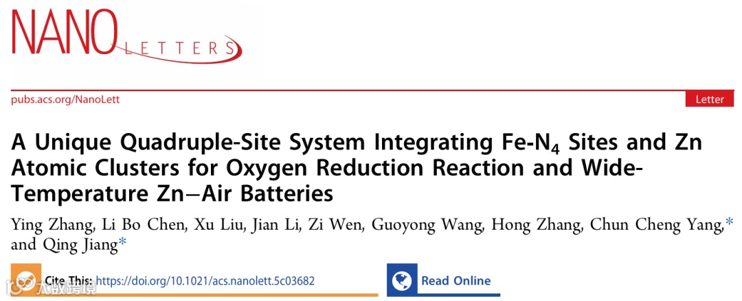 锌空气电池的商业化应用受限于阴极氧还原反应动力学缓慢和贵金属催化剂成本高昂。吉林大学蒋青、杨春成团队在Nano Letters上发表创新研究成果,通过90秒超快速热冲击策略,成功构建了一种独特的四位点协同催化剂(FeSA/ZnAC-N-C),实现了氧还原反应性能的突破性提升,为锌空气电池的宽温域应用提供了新材料解决方案。