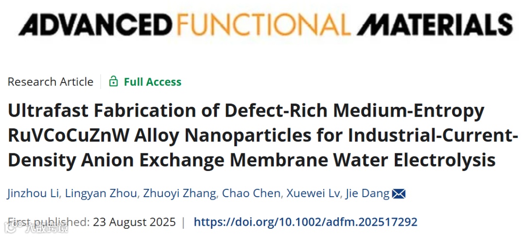 当绿氢要走向 500 mA cm⁻² 工业级电流时,催化剂怕的不是活性低,而是“扛不住”。重庆大学党杰团队今天上线的 AFM 研究,用闪蒸焦耳热 6 秒飙到 1600 ℃,把 RuVCoCuZnW 中熵合金直接“焊”在碳纳米管上,并借 Zn 的瞬间蒸发留下高密度空位。结果:HER 231 mV、OER 435 mV @500 mA cm⁻²,AEM 电解槽 1500 h 衰减 <2 μV h⁻¹,槽压仅 1.66 V——比 DOE 2025 目标还猛!