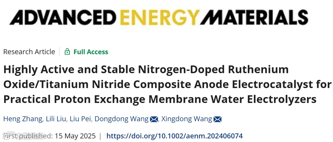 氢能作为实现碳中和目标的关键清洁能源载体,质子交换膜水电解(PEMWE)作为规模化生产绿氢的核心技术备受关注。然而,其阳极氧析出反应(OER)催化剂一直面临成本与稳定性难题。北京科技大学王新东教授团队在《Advanced Energy Materials》上发表的论文,提出一种氮掺杂氧化钌 / 氮化钛(N-RuO₂/TiN)复合催化剂的创新设计,为 PEMWE 技术的产业化提供了新的解决方案,也为深圳中科精研在相关领域的探索提供了重要参考。