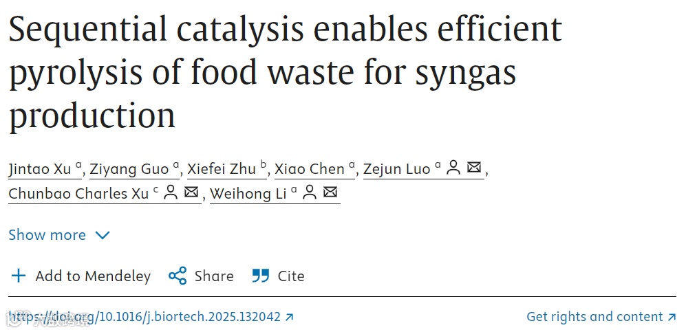随着循环经济的推动,食物垃圾的有效利用成为环境保护和资源回收的重要议题。香港城市大学李威宏教授团队在《Bioresource Technology》期刊上发布了题为《Sequential catalysis enables efficient pyrolysis of food waste for syngas production》的研究论文,提出了一种创新的顺序催化系统,结合焦耳加热技术,在食物垃圾热解过程中大幅提高了合成气的产量和选择性。此项技术不仅有效提升了资源回收效率,还为未来的废物能源化利用提供了全新思路。