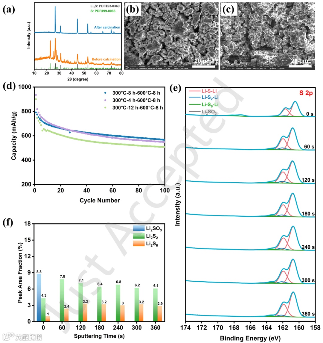 图4 双壳层结构演变:XPS深度剖析证实Li₂S@Li₂S₆@Li₂S₂双壳层结构成功构建,300°C预处理8小时的样品性能最佳。