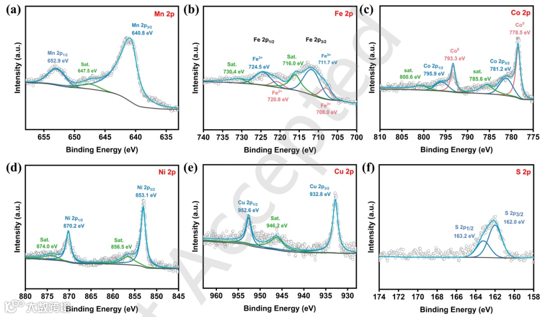 图3 表面化学态分析:XPS揭示金属元素以混合价态存在,Cu在HTS过程中自发还原,多元价态共存优化了对多硫化物的吸附与催化转化。