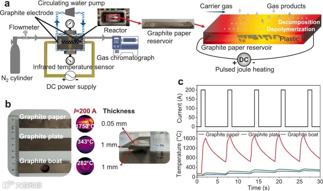 秒级转化技术:采用石墨纸介质,1秒内升温至1750°C,实现塑料废弃物瞬时转化