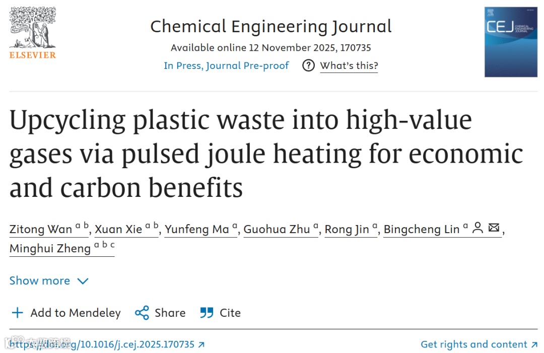 面对全球塑料污染治理的紧迫挑战,国科大杭州高等研究院林炳丞博士团队在《Chemical Engineering Journal》上发表创新研究成果。该研究开发了一种基于脉冲焦耳加热的塑料升级回收技术,通过可循环石墨纸介质,在不依赖催化剂的条件下将废塑料高效转化为高价值可燃气体。该技术可实现99.4%的氢回收率,全球推广应用预计年经济效益达181亿美元,为塑料废弃物资源化提供了兼具低碳性与经济可行性的全新解决方案。