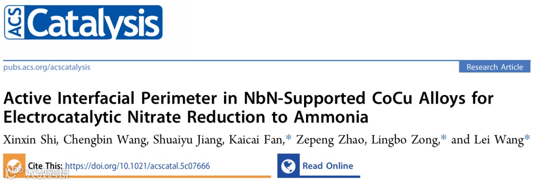 Shi, X.; Wang, C.; Jiang, S.; Fan, K.; Zhao, Z.; Zong, L.; Wang, L. Active Interfacial Perimeter in NbN-Supported CoCu Alloys for Electrocatalytic Nitrate Reduction to Ammonia. ACS Catal. 2026, *16*, 1506-1516. DOI: 10.1021/acscatal.5c07666