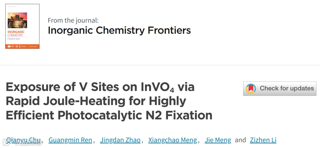 Qianyu Chu, Guangmin Ren, Jingdan Zhao, Xiangchao Meng, Jie Meng and Zizhen Li*. Exposure of V Sites on InVO₄ via Rapid Joule-Heating for Highly Efficient Photocatalytic N₂ Fixation. Inorg. Chem. Front., 2026.