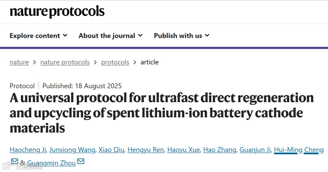 当 2030 年全球废旧锂电池突破 2800 GWh 时,我们能否像“充电”一样给失效正极“回血”?成会明院士与周光敏副教授今日在《Nature protocols》上线的研究,给出了一份“实验菜谱”: