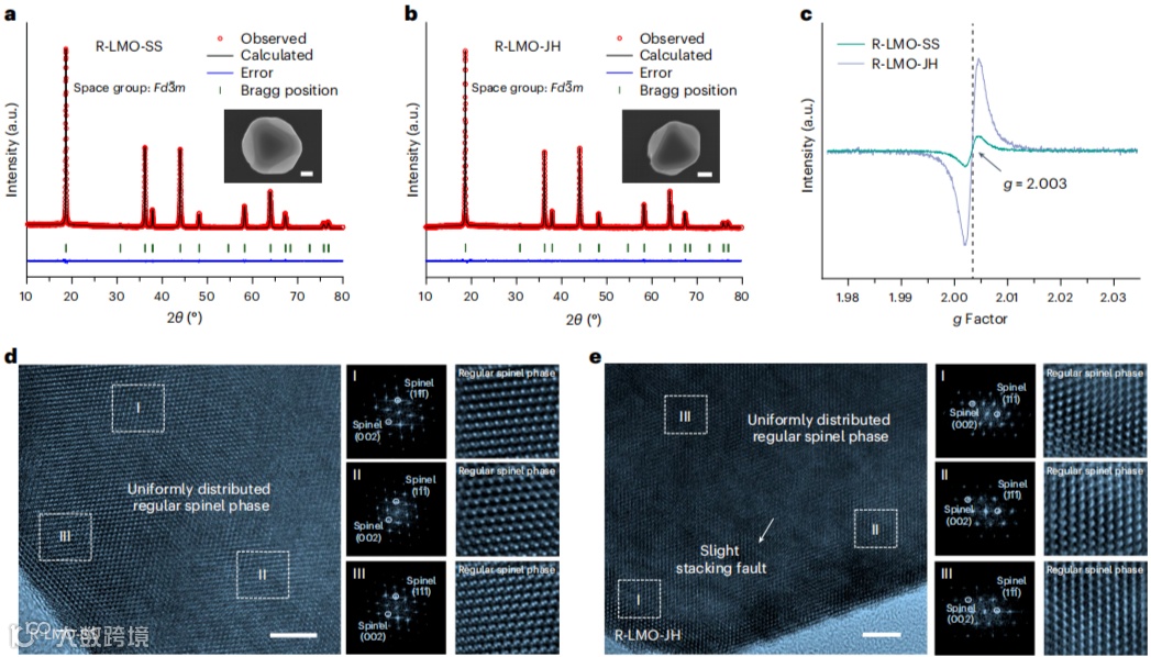 • R-LMO-JH:孪晶界+堆叠层错,EPR 氧空位信号 g=2.003;