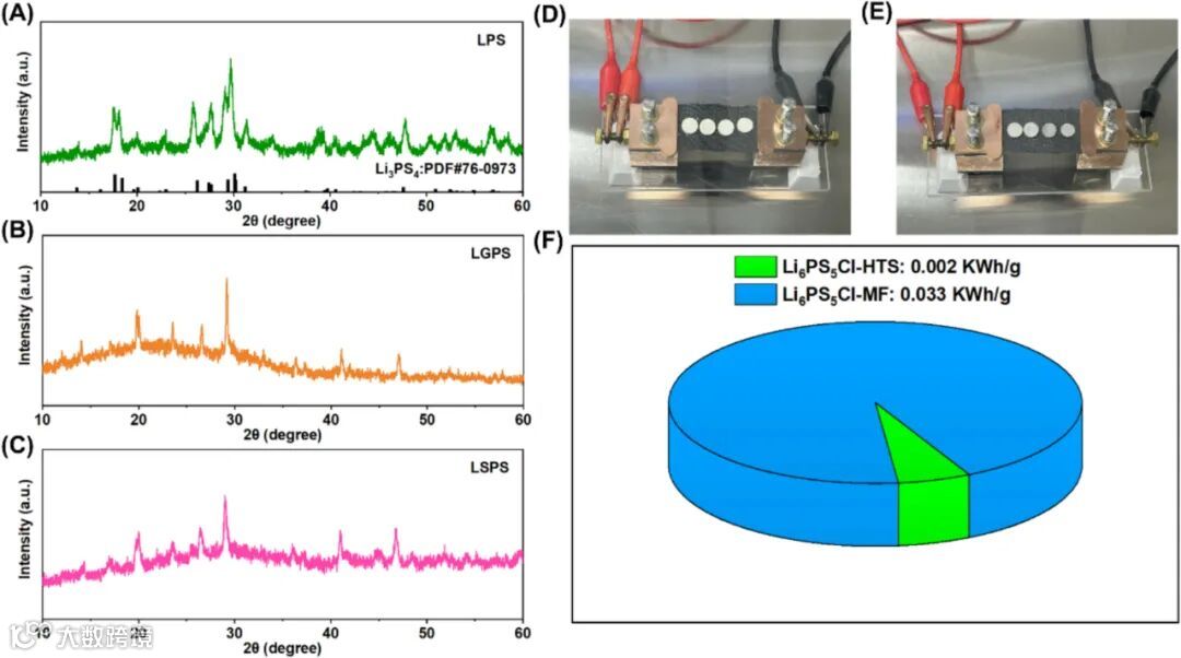 图6验证了HTS技术的普适性,成功合成了LPS、LGPS和LSPS等多种硫化物电解质,克级批量合成显示优异的批间重现性,单位能耗仅为传统方法的1/16。