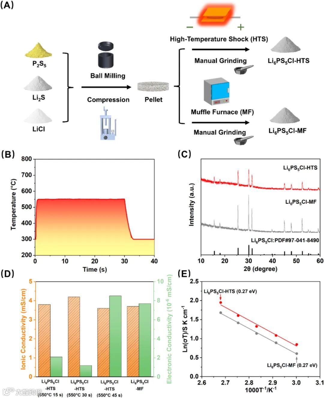 Ultra-fast synthesis of high-performance sulfide-solid-electrolytes via high-temperature shock for all-solid-state lithium batteries.