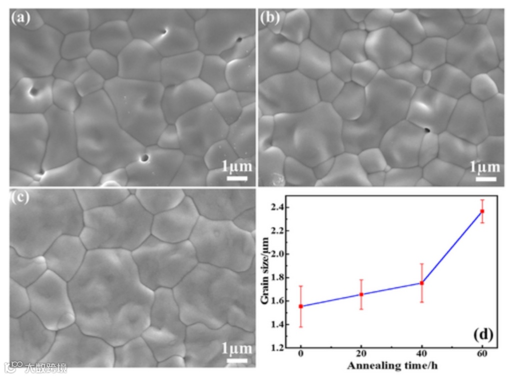 图6的晶粒生长曲线更直观:从1.66 μm长到2.37 μm,60小时只长了0.71 μm,平均速率13.7 nm/h。对比一下,传统YSZ在同样温度下早就粗得没法看了。