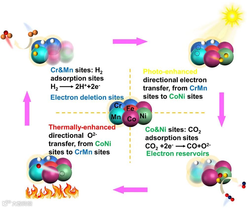 图6系统提出了高熵合金光热催化二氧化碳还原机理图。