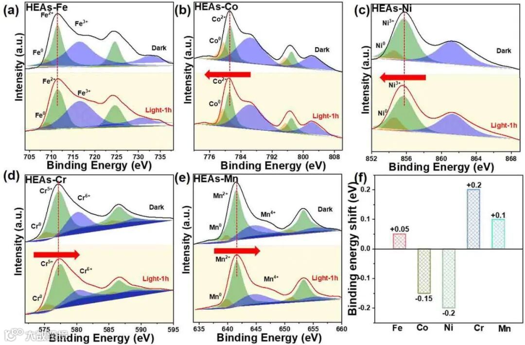 图5的原位XPS分析阐明了光照条件下各元素的电子结构变化。