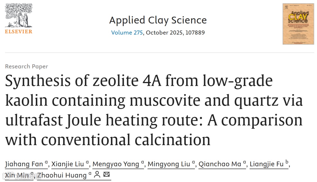 在资源高效利用与绿色发展的时代浪潮下,从低品位矿物资源中提取高附加值材料成为科研热点。沸石 4A 作为一种应用广泛的微孔结晶硅铝酸盐,在吸附、催化等领域有着重要地位,但其传统制备方法存在成本高、资源消耗大的问题。近期,中国地质大学(北京)黄朝晖教授团队在《Applied Clay Science》上发表的成果,为这一困境带来了新的解决方案,也为深圳中科精研在相关领域的探索提供了参考。