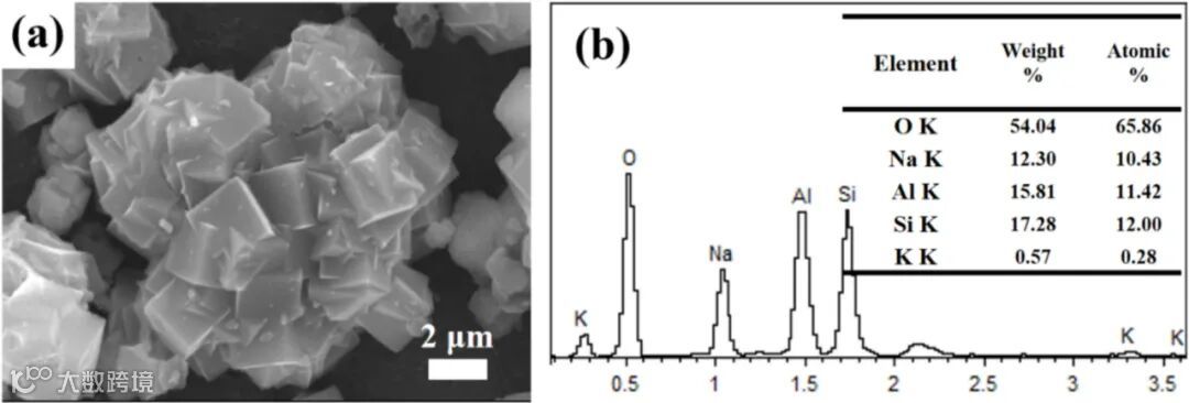 EDS 分析 :EDS 元素分析显示,白云母释放的 K⁺以微量形式通过离子交换进入沸石骨架,未形成独立杂质相,保障杂质元素无害化。