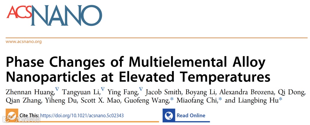 高温相变研究:马里兰大学胡良兵教授、美国橡树岭国家实验室Miaofang Chi、匹兹堡大学Guofeng Wang等人在《ACS Nano》上发表了题为“Phase Changes of Multielemental Alloy Nanoparticles at Elevated Temperatures”的研究论文。