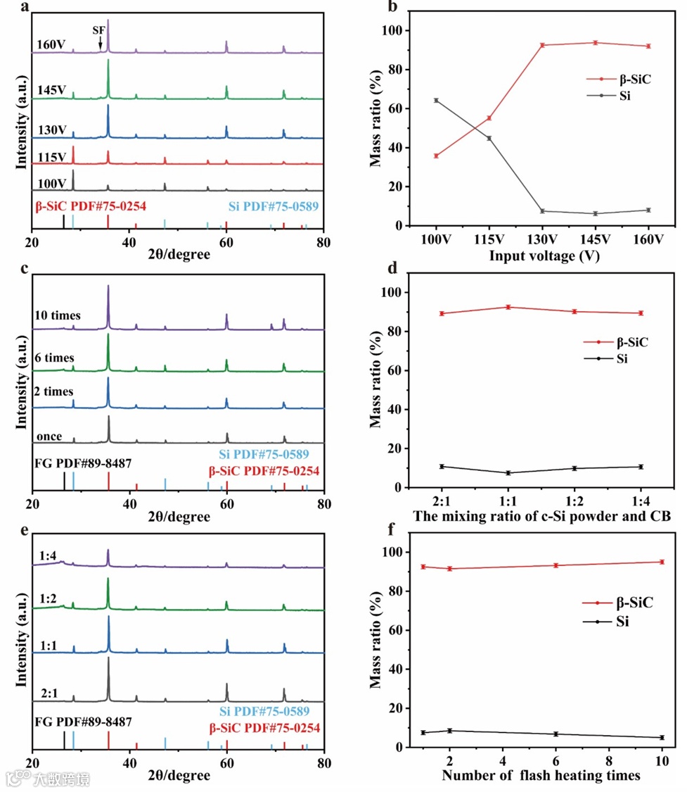 130 V → β-SiC 产率 92 wt%,再高反而烧过头;