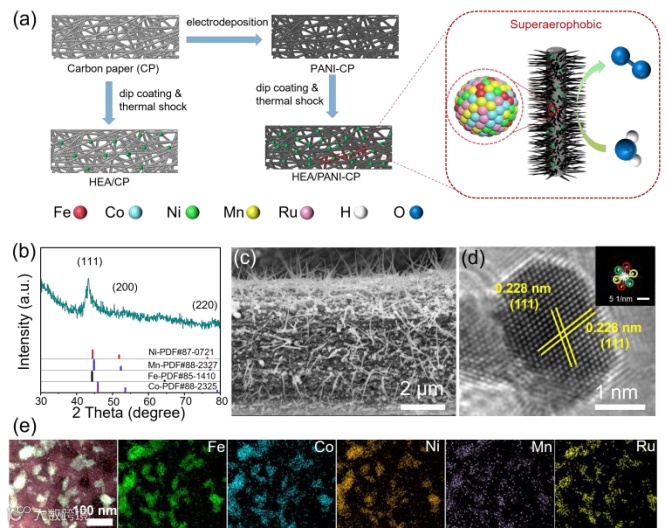 20A电流脉冲1秒升温至1783K,五金属(Fe/Co/Ni/Mn/Ru)固溶为单一相高熵合金(HEA)。