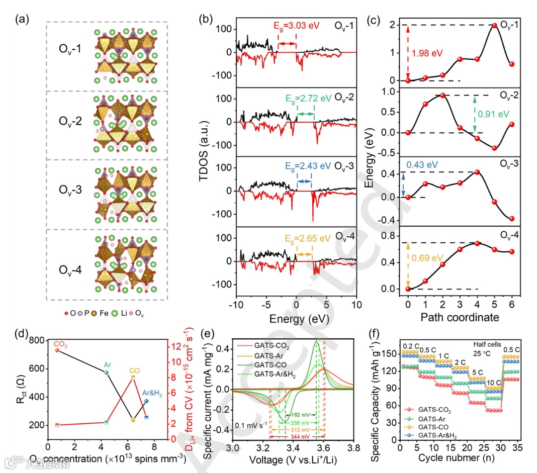 Ov 将 LFP 带隙从 3.8 eV 降至 1.5 eV,Li⁺扩散能垒降至 0.28 eV; - 结构稳定性