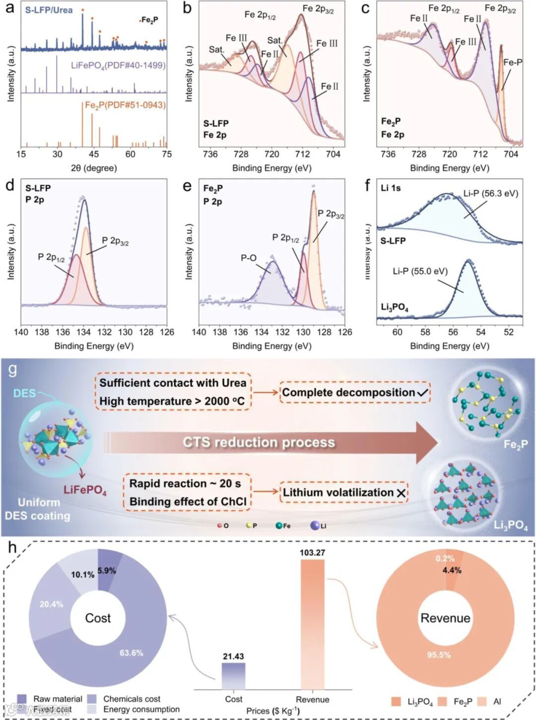 高效回收:锂、铁回收率分别达97.39%与99.17%,实现元素闭环循环