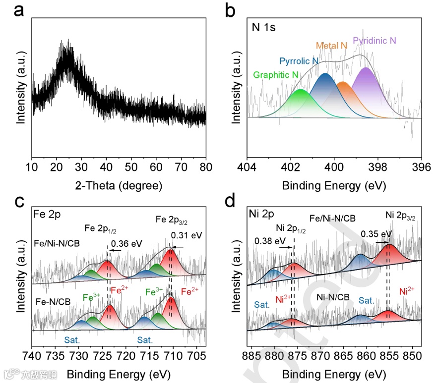 图2 的XPS等表征分析了材料的电子结构,表明金属与氮配位成功形成了M-Nx活性位点。
