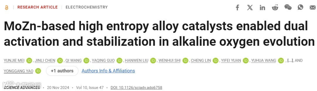 高熵合金催化剂设计:通过Mo和Zn实现OER的双重激活与稳定。