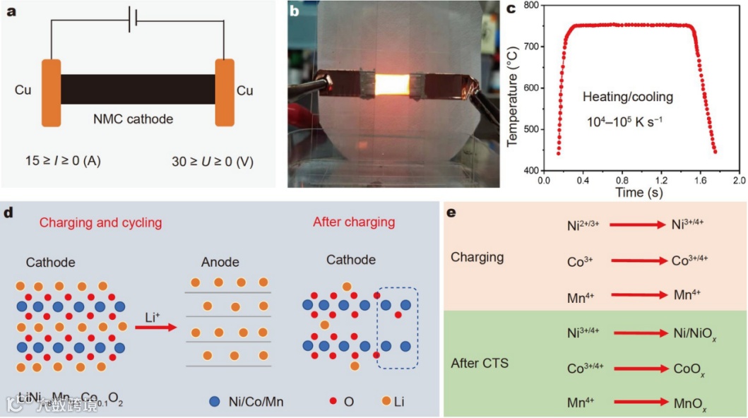 图1:超快碳热冲击(CTS)技术在废旧锂离子电池正极材料再生中的应用