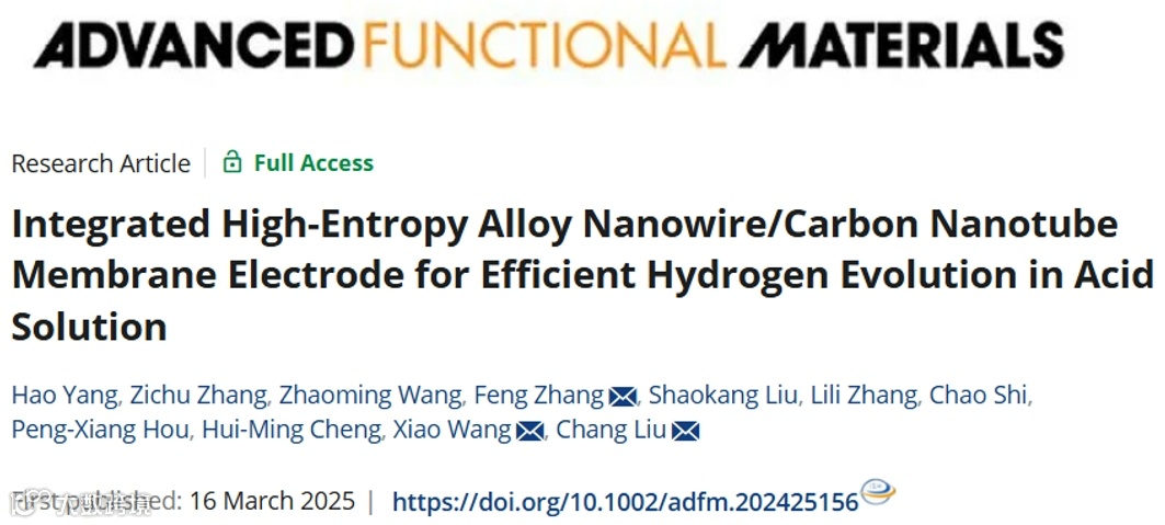 创新膜电极设计:中科院金属所的研究团队开发了一种基于单壁碳纳米管(SWCNT)网络锚定氮掺杂碳包覆高熵合金纳米线(HEA NWs)的一体化膜电极,实现了高效稳定电催化析氢(HER)。
