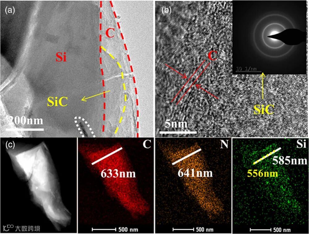 创新结构设计:设计出 “刚柔结合” 的 Si@SiC@C 复合结构,刚性碳化硅(SiC)中间层有效抑制硅的体积膨胀,氮掺杂碳外层提升导电性并促进锂离子传输。