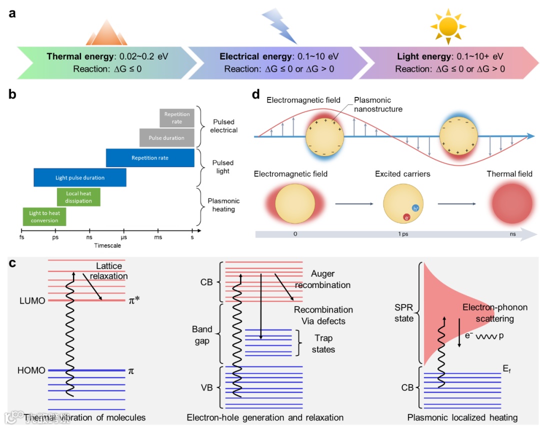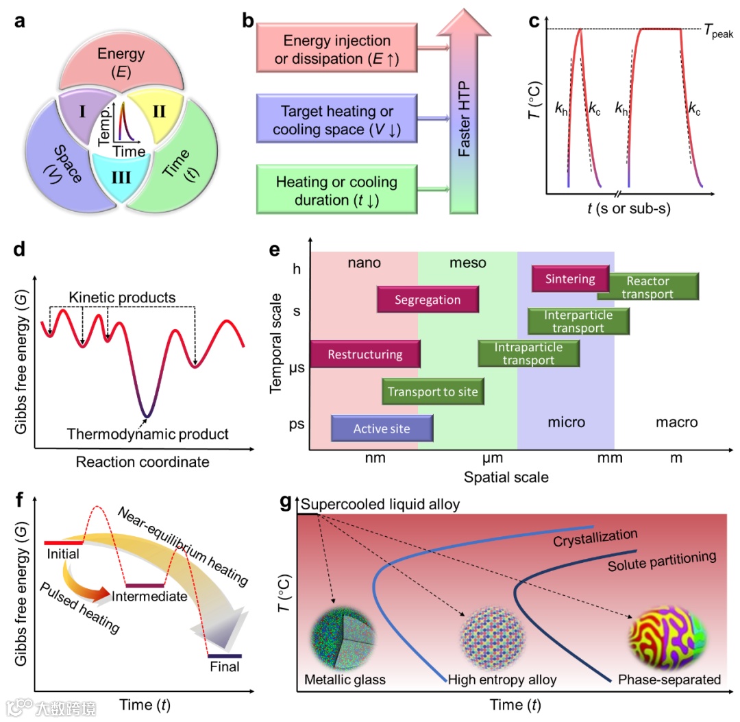 在催化剂合成过程中,超快脉冲加热技术为催化剂材料的设计带来了更多的可能性。图3详细描述了通过超短时间尺度的光能脉冲加热,如何在纳米尺度上实现精细的催化剂调控。这为未来催化剂的高效合成和性能提升提供了新的方向。