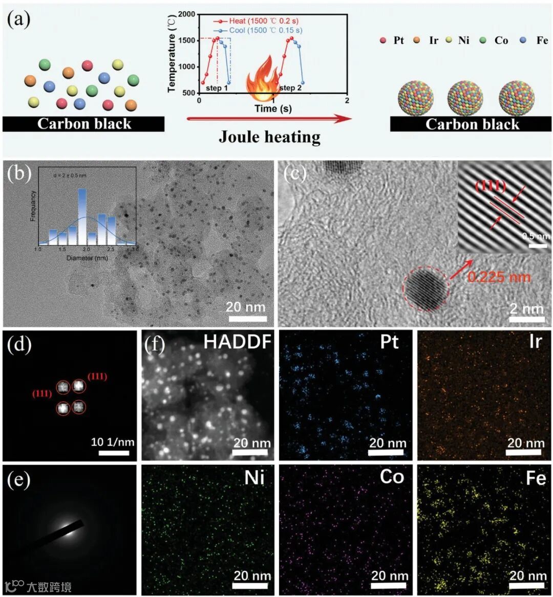 图1:PtFeCoNiIr/C的合成原理和形貌分析