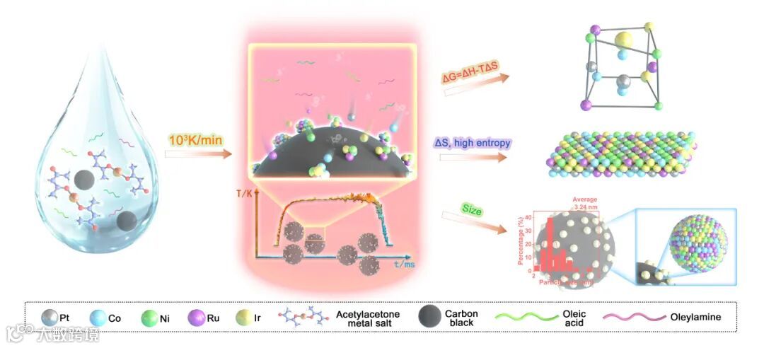 图1:非平衡热冲击合成亚稳态多元素合金纳米粒子