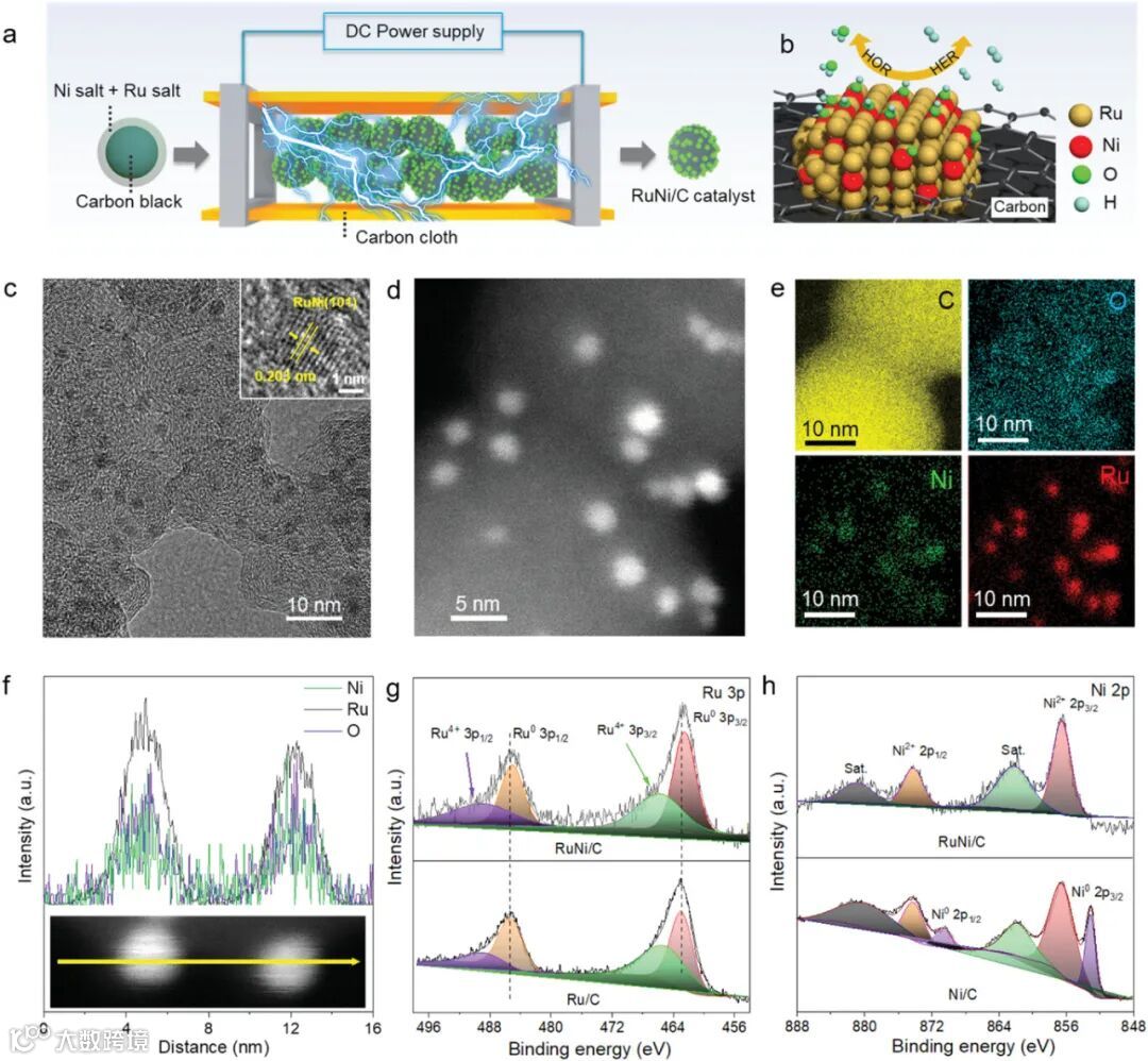 图1 展示了RuNi/C催化剂的合成过程和结构表征
