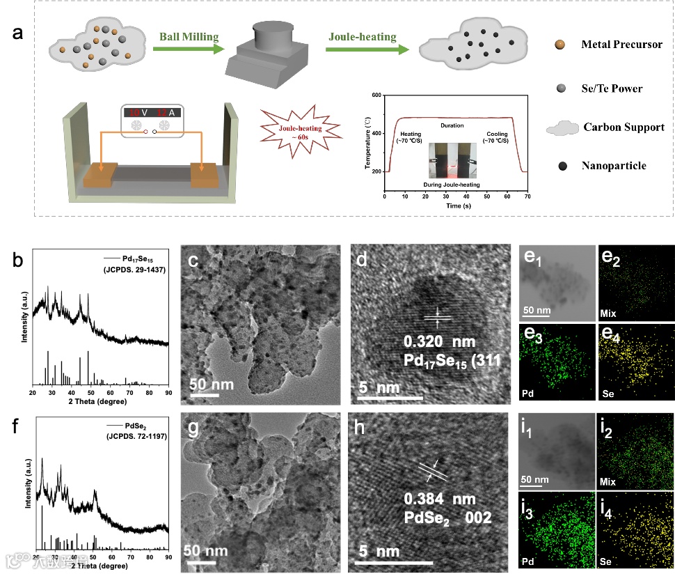 研究报道了一种创新的合成策略,通过结合快速焦耳加热和耦合球磨固相合成方法,成功制备了具有优异特性的碳载钯-硒(Pd-Se)纳米颗粒。这些纳米颗粒在尺寸、表面清洁度和晶体相控制方面表现出色,特别适用于在碱性介质中催化氧还原反应(ORR)和乙醇氧化反应(EOR)。