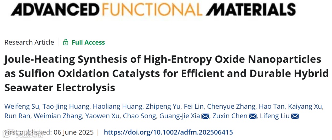 氢能作为实现碳中和目标的核心载体,在工业脱碳与清洁能源转型中至关重要。然而,电解水制氢技术面临淡水短缺的困境,海水电解虽是理想替代方案,却受困于阳极析氯反应。近日,松山湖材料实验室刘利峰研究员、华南师范大学陈祖信副研究员、大湾区大学夏广杰研究员联合团队在《Advanced Functional Materials》上发表的成果,采用 “焦耳热冲击法” 合成碳载五元高熵氧化物催化剂(FeCoNiMnCuO),为无氯海水制氢提供了新的解决方案,也为深圳中科精研在相关领域的探索提供了思路。