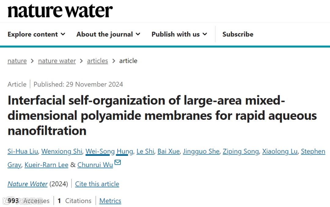 在这一研究思路的引导下,天津工业大学的武春瑞研究员团队在《Nature Water》期刊上发表了题为“Interfacial self-organization of large-area mixed-dimensional polyamide membranes for rapid aqueous nanofiltration”的论文。研究团队采用了一种新型的界面自组装方法,利用两种小分子在油水界面快速自组装,成功制备出一种大面积的混合维聚酰胺膜。