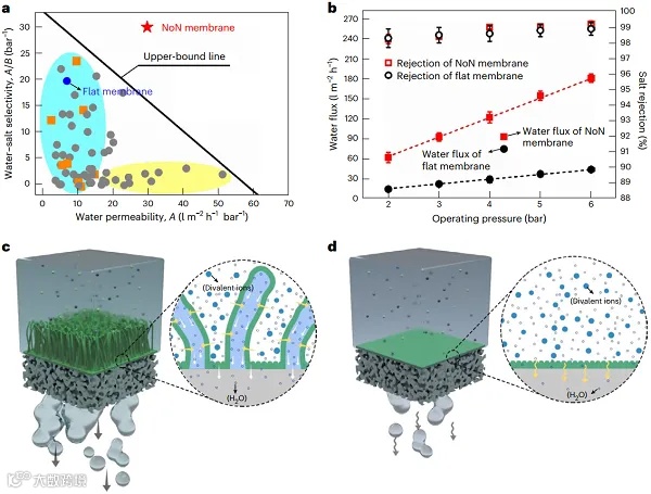 通过对比实验,研究团队发现这种新型混合维度膜相比传统聚酰胺膜,具有更高的水透过性和更优的水盐分离性能。这为水处理技术的提升提供了强有力的理论支撑和技术参考。
